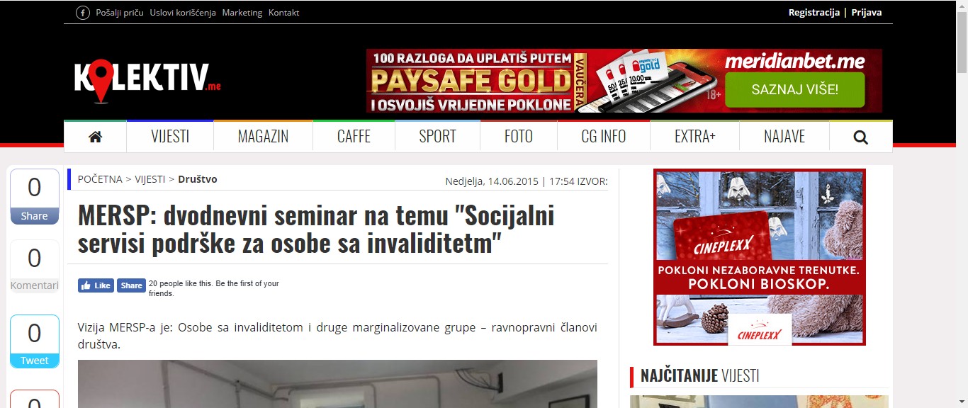 Portal Kolektiv.me: dvodnevni seminar na temu “Socijalni servisi podrške za osobe sa invaliditetom”
